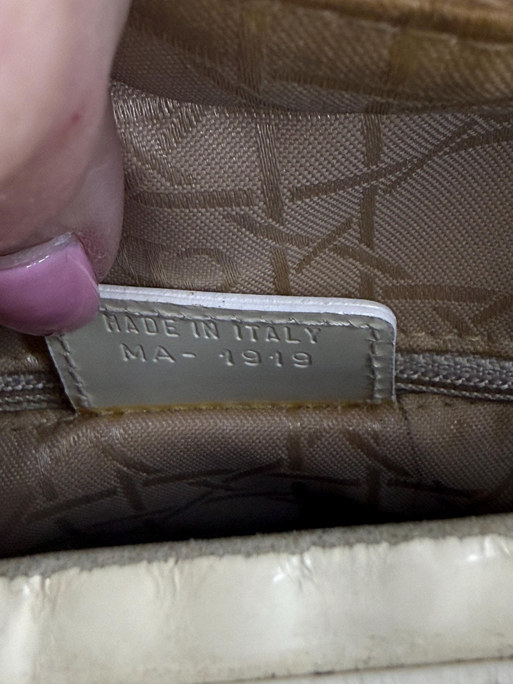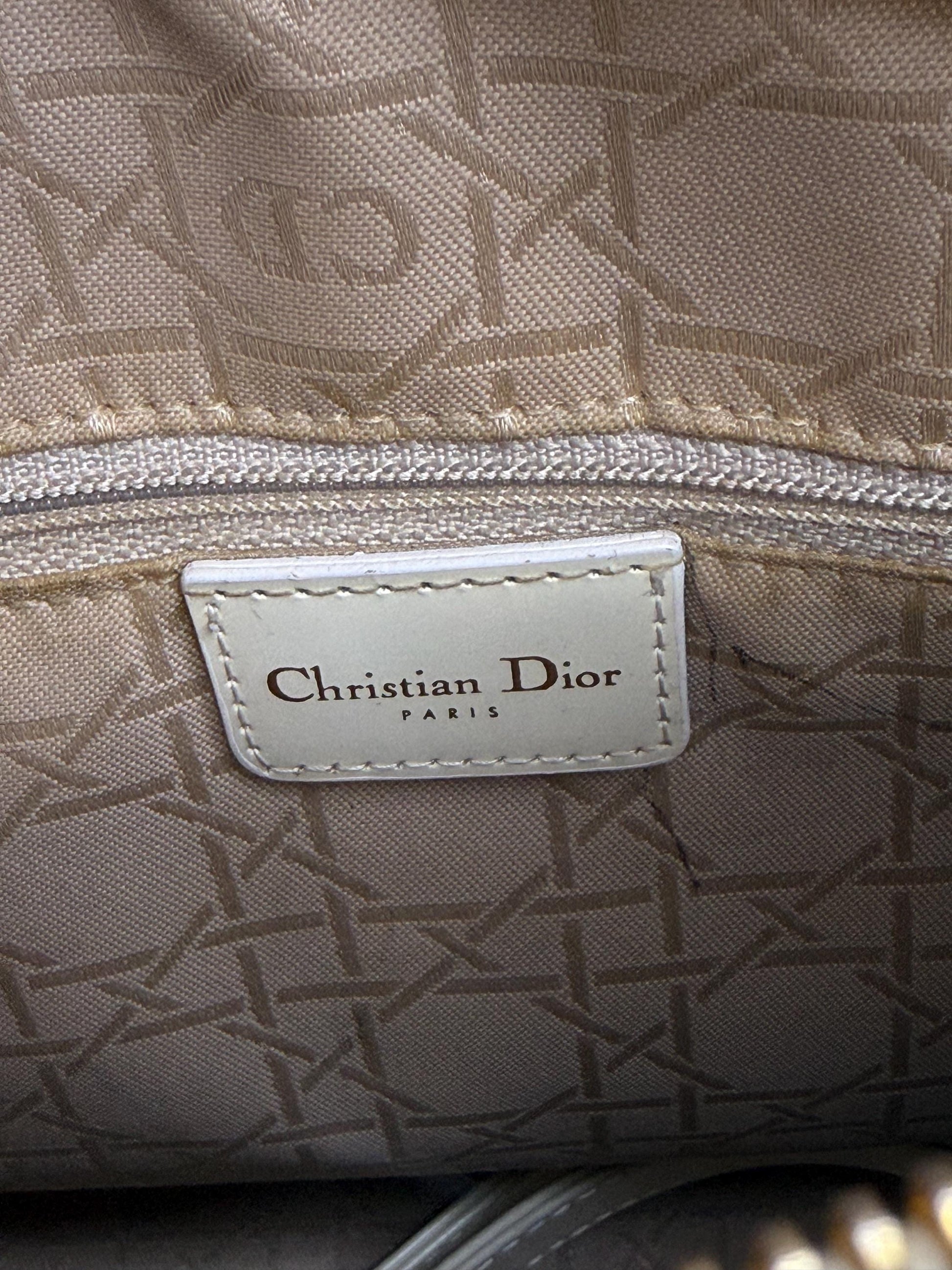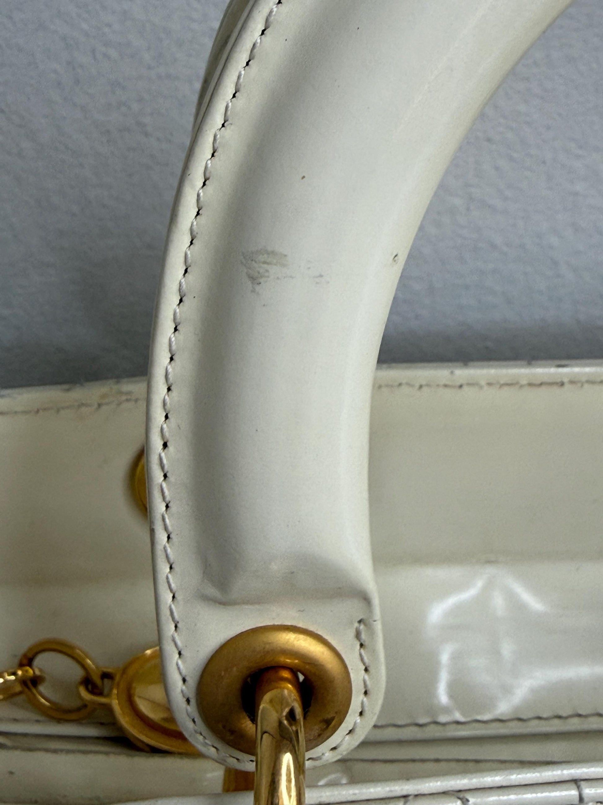 Christian Dior Vintage Lady Dior Large Cream Patent Leather Handbag