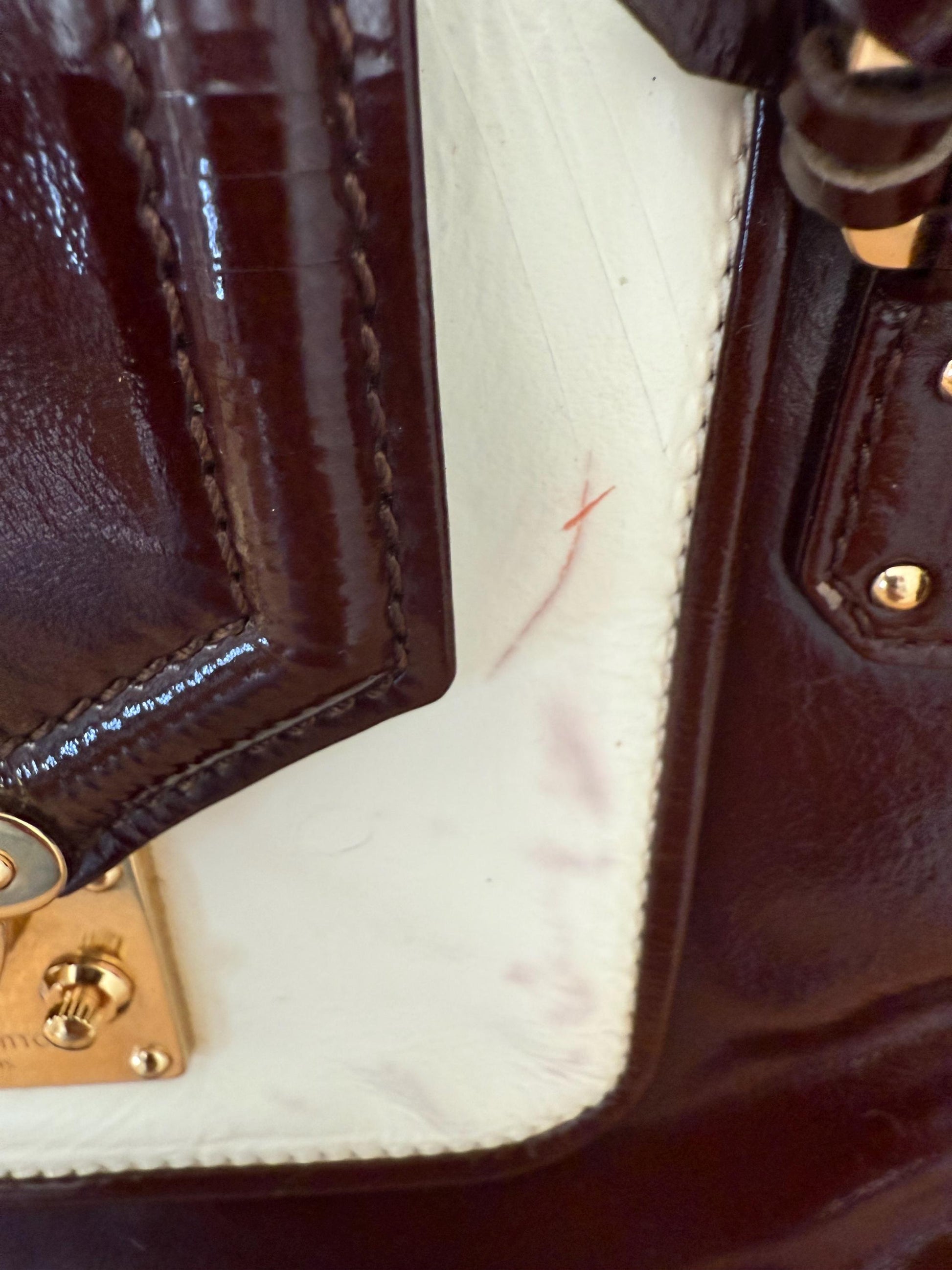 Louis Vuitton RARE Limited Edition 2002-2003 Cruise Line Sac Bicolor patent leather handbag in dark brown and white. Ciara December 2002. In excellent preloved condition. Please reference pictures. There is slight rubbing on the front from the hang tags.