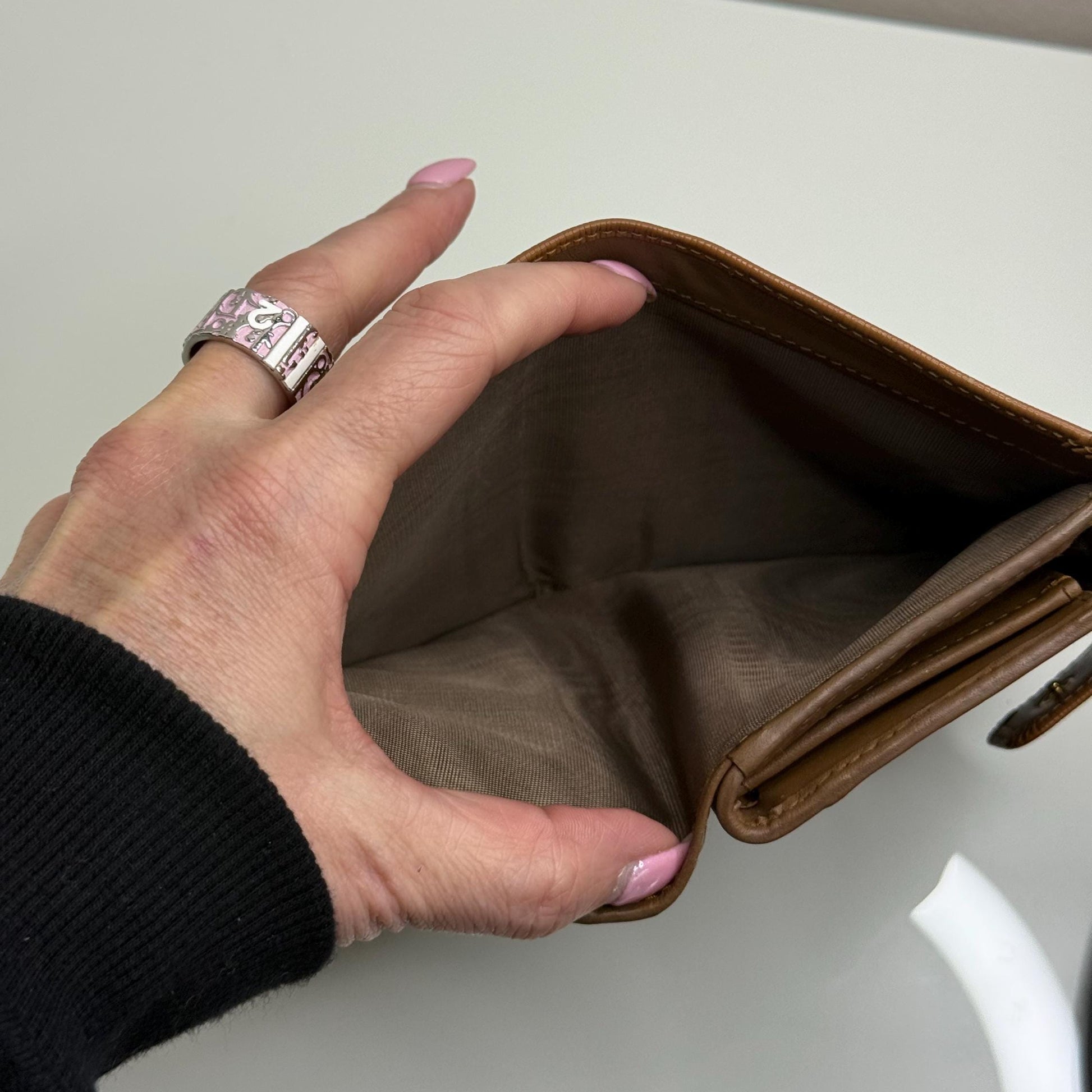 Prada Saffiano Camel Compact Wallet. In very good used preloved condition. Please reference pictures.