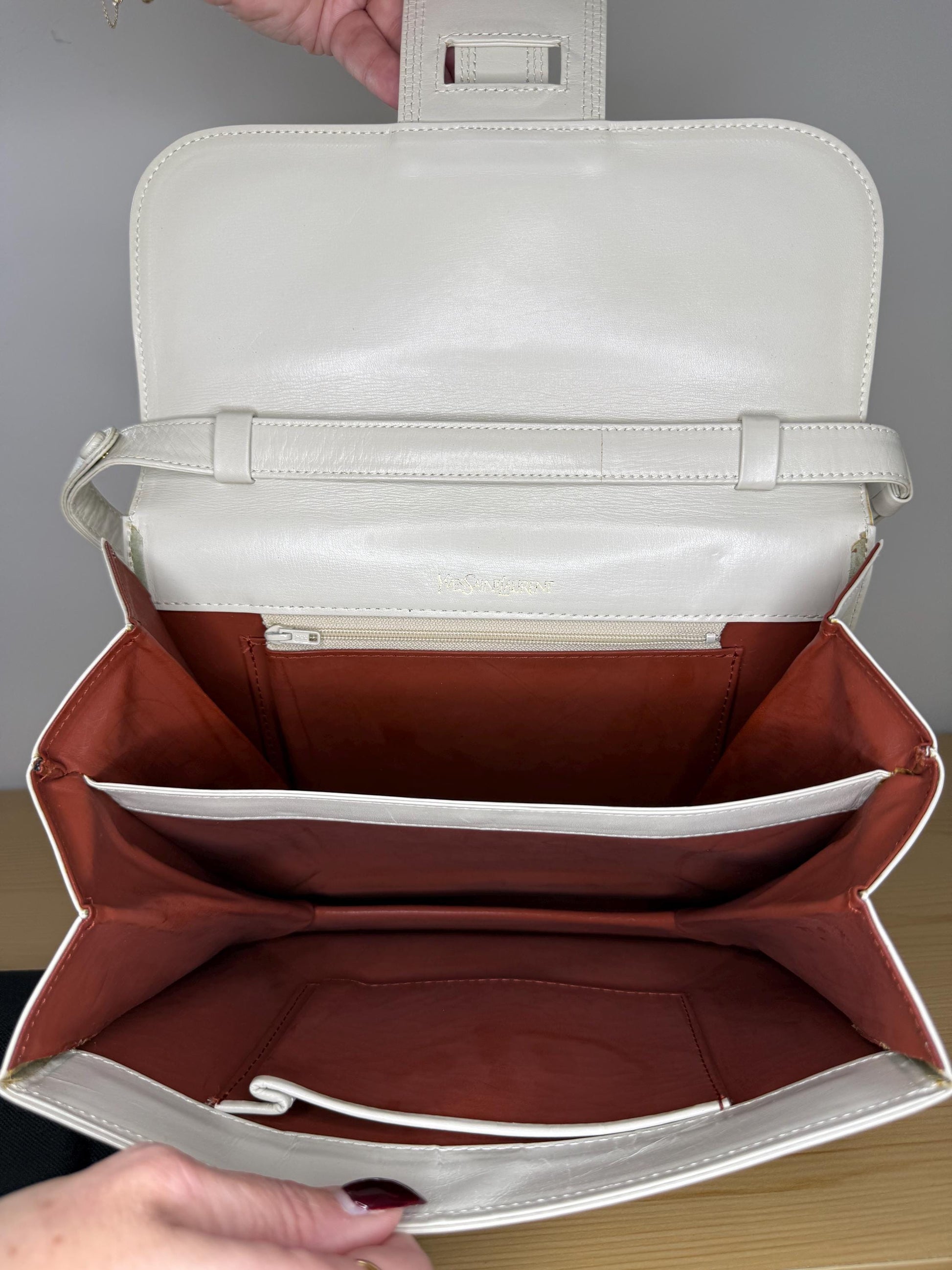 AUTHENTIC Vintage YSL 2 Way Cream Shoulder Bag